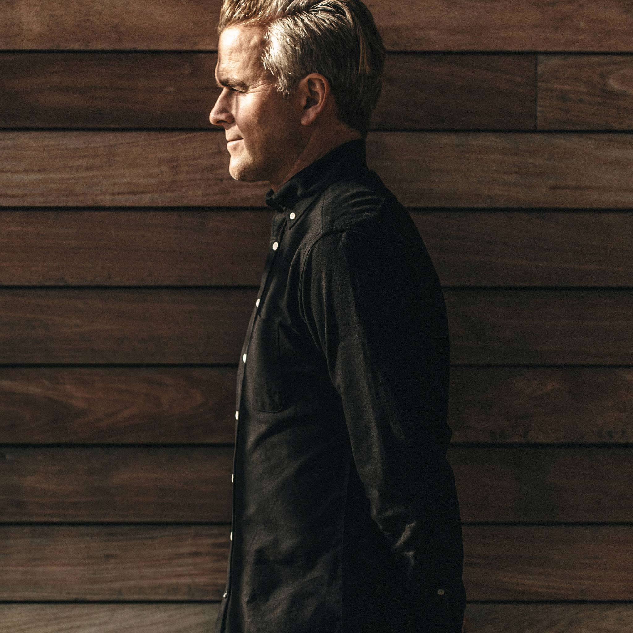 Our staple shirt has a tailored fit with a triple button collar. 7 years in the making, this classic oxford comes in Black. Shop Essentials.